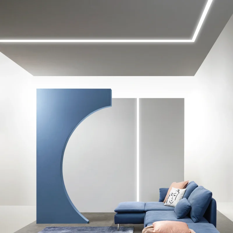 - Uz rubove spuštenog stropa: u dnevnim boravcima, spavaćim sobama i hodnicima nerijetko se postavljaju LED trake upravo na stropne rubove. Ovakva pozicija vizualno proširuje prostor, dok istovremeno naglašava njegovu arhitekturu.