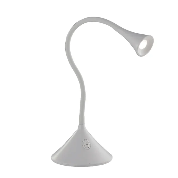 Bijela stolna lampa s GU10 žaruljom koja pruža usmjereno osvjetljenje – savršen je izbor za radni stol u dječjoj sobi (SKU-ML0276).